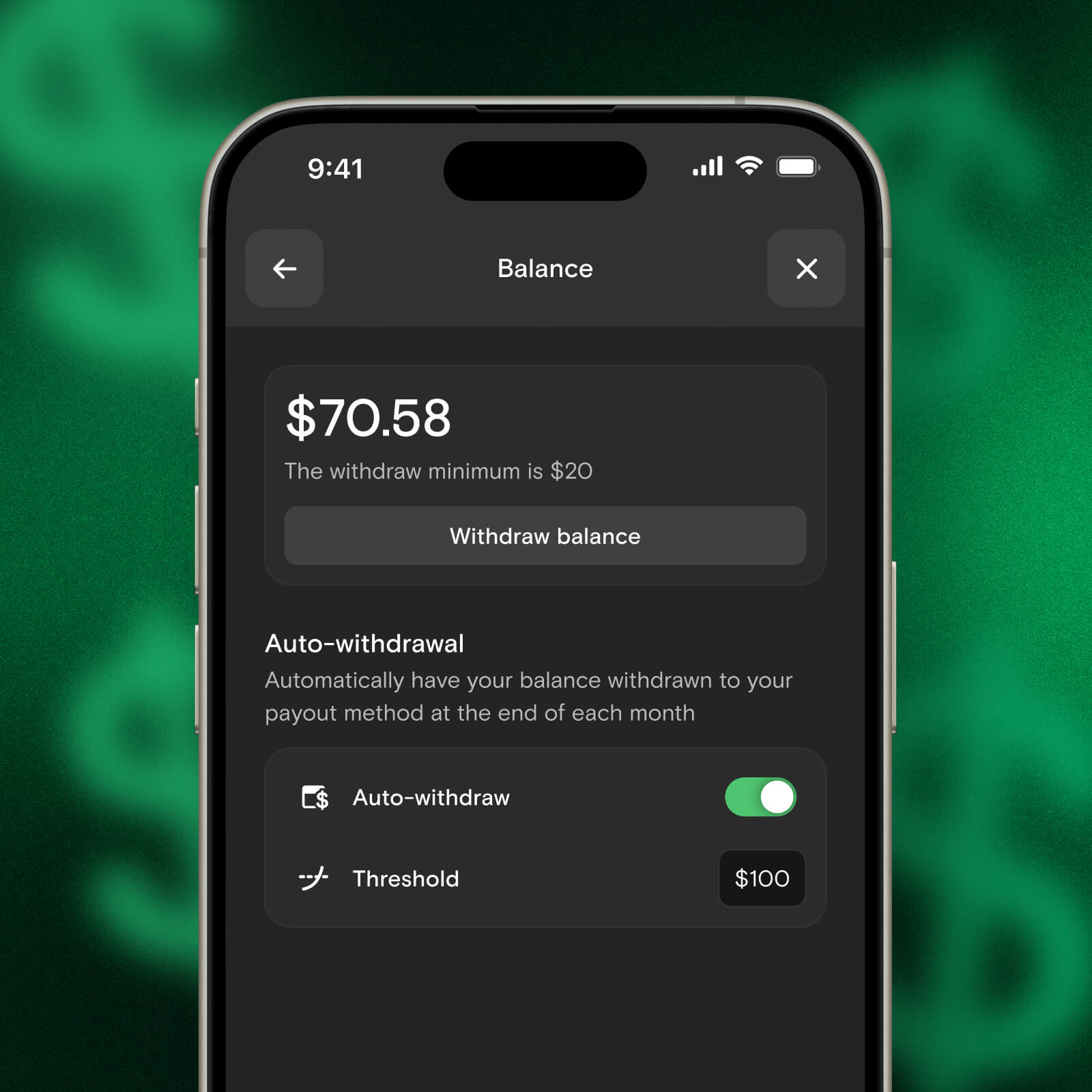 You and each of the payees in your room can track individual earnings from your Playback Wallet. The Wallet reports how much you earned from each room you’ve contributed to and allows you to withdraw your funds automatically or on an ad hoc basis if you prefer.