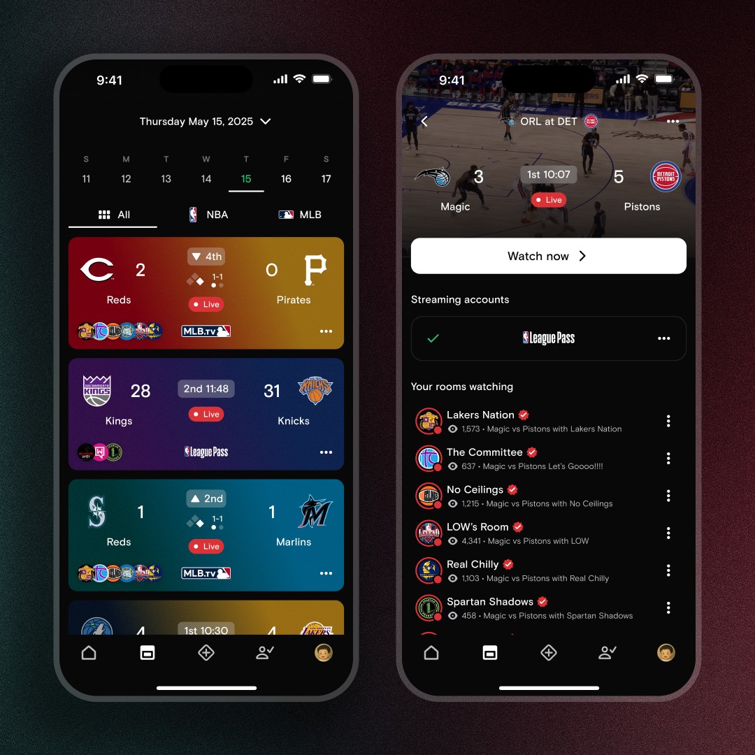 Many of the communities on Playback stream around global events like the sports broadcasts from our NBA, MLB and EuroLeague apps. Visit the new Events tab to see events on Playback and open an Event page to browse through all the rooms streaming it.