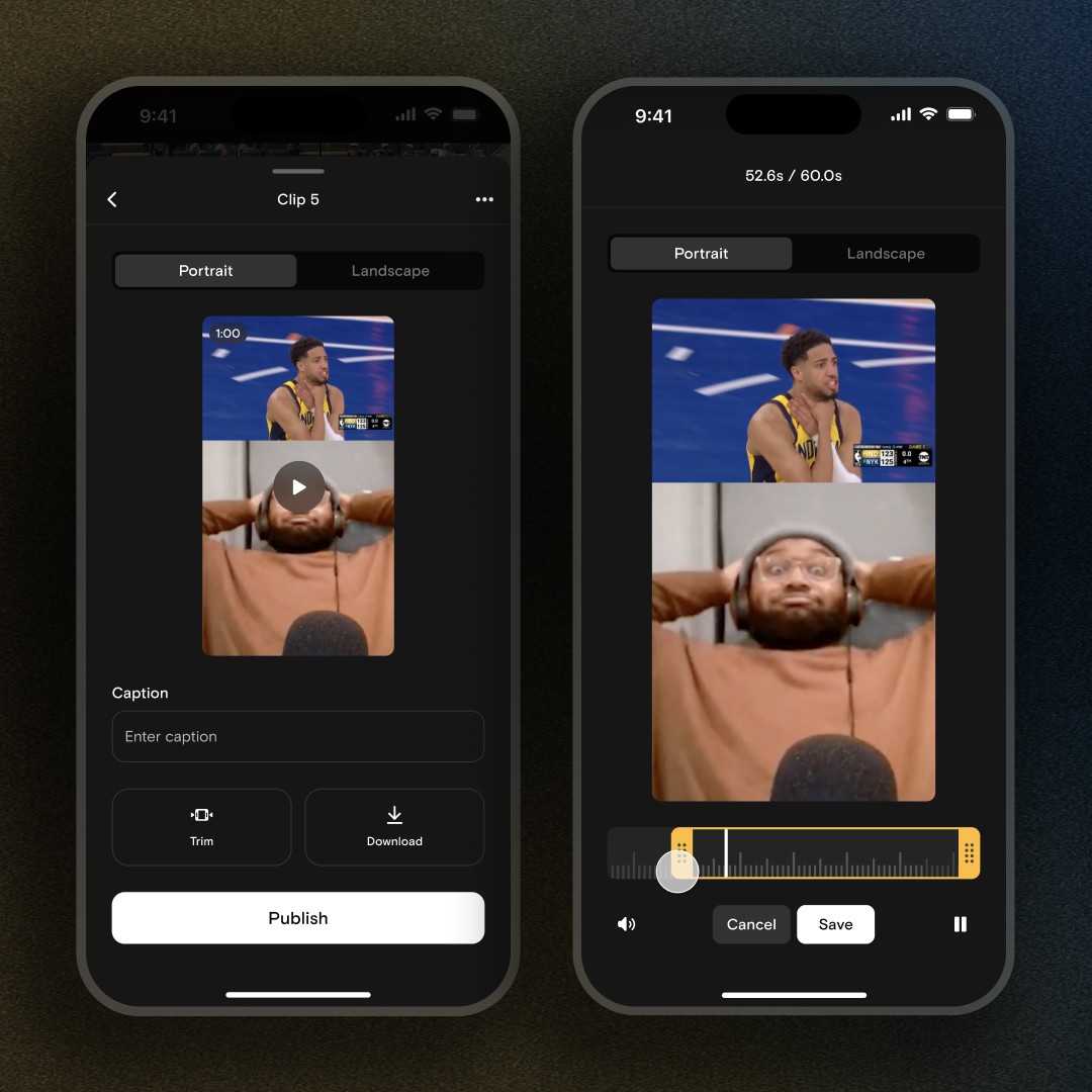 Now clips are also an essential tool for on-platform promotion. We’ve added a new publishing flow where you can choose to publish any clip to the feed and to your room profile. Just add a caption and tap Publish. We also now have clip trimming so you can edit your clip in app.
